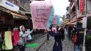 「十分車站」放天燈 遇見十分幸福 發佈留言 / 作者: adlovetravel / 2023-10-07 「十分車站」放天燈 遇見十分幸福 (小編:滷鮮肉) 台灣平溪鐵路的十分車站因為熱門電影《那些年我們一起追過的女孩》而爆紅,電影中柯景騰與沈佳宜放天燈的場景便拍攝於此,這裡也是台灣出名的放天燈許願之地,吸引無數善男性女前來放燈許願。立即預訂台北特價機票,與情人一起來場浪漫的約會吧! 跨進鐵道,鐵道的那一頭是十分車站,沒有火車來,就安安靜靜的;鐵道的另一端是老街,街上人聲鼎沸,販賣天燈的店家鱗次櫛比,遊客忙著在天燈上寫字祈福,天燈一個個緩緩升空,鐵道上呈現忙碌的別緻景象。 地址:台灣新北市平溪區平溪區226
